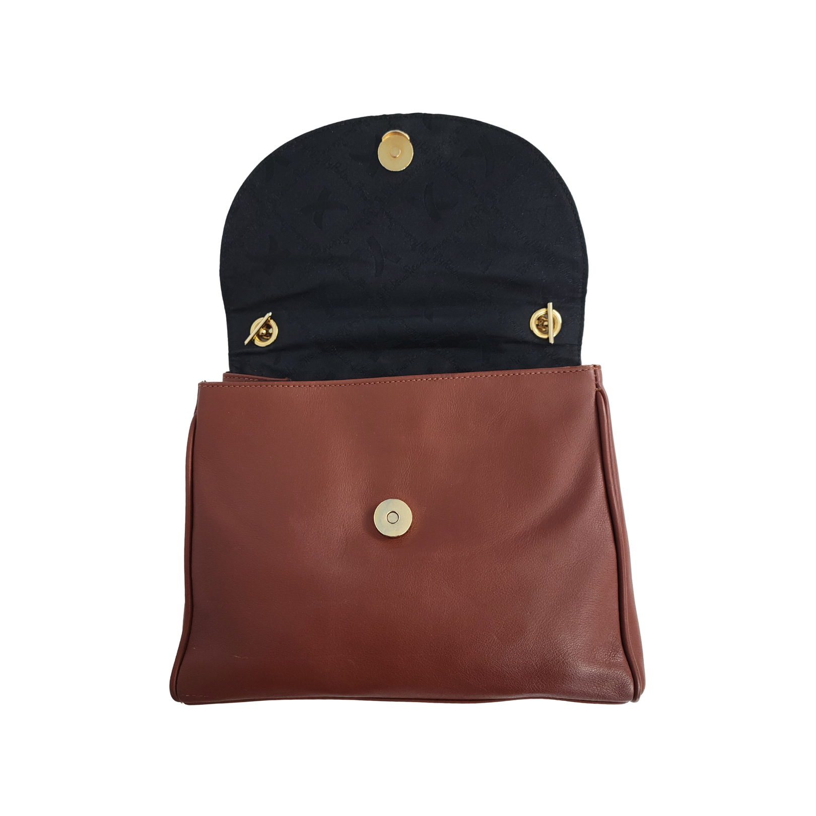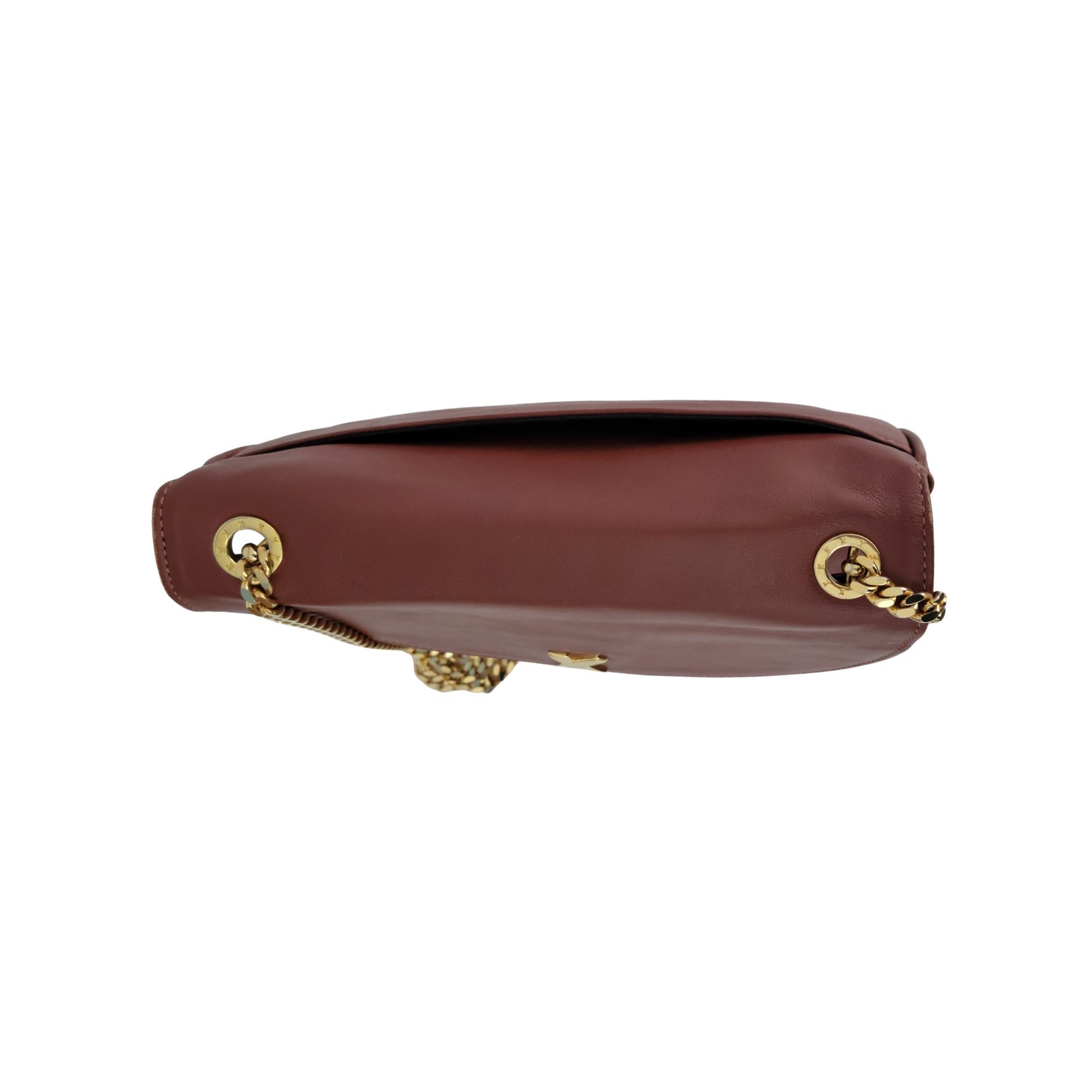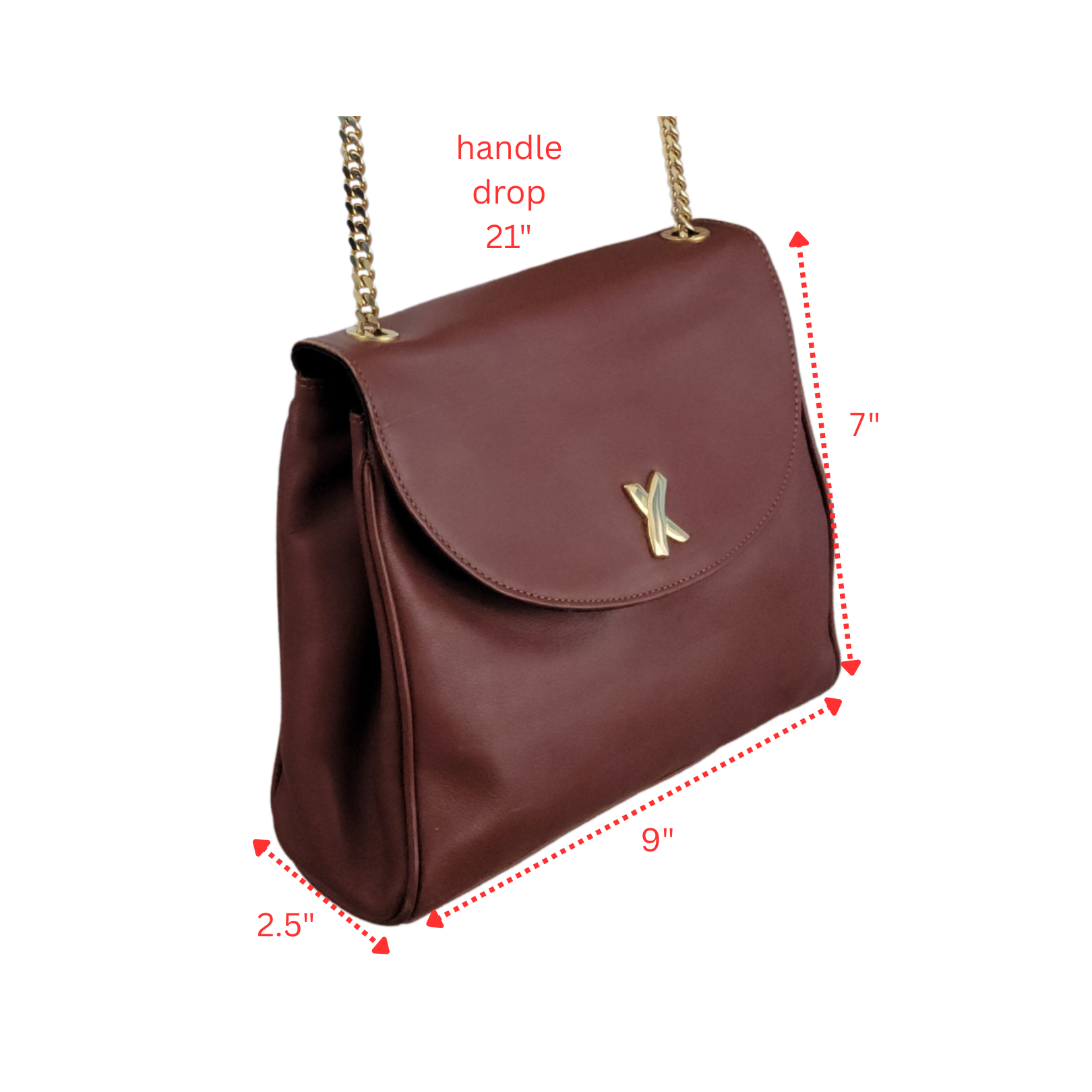 • Smooth brown leather with gold-tone hardware