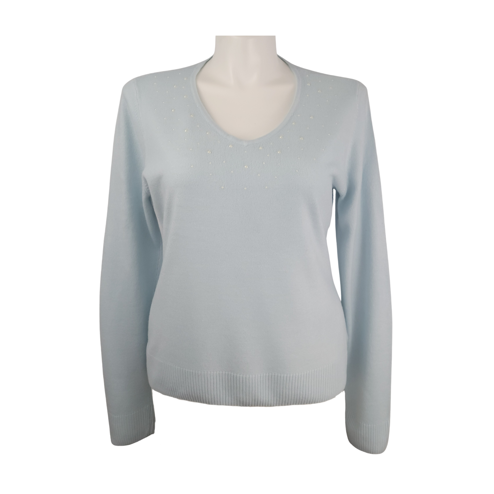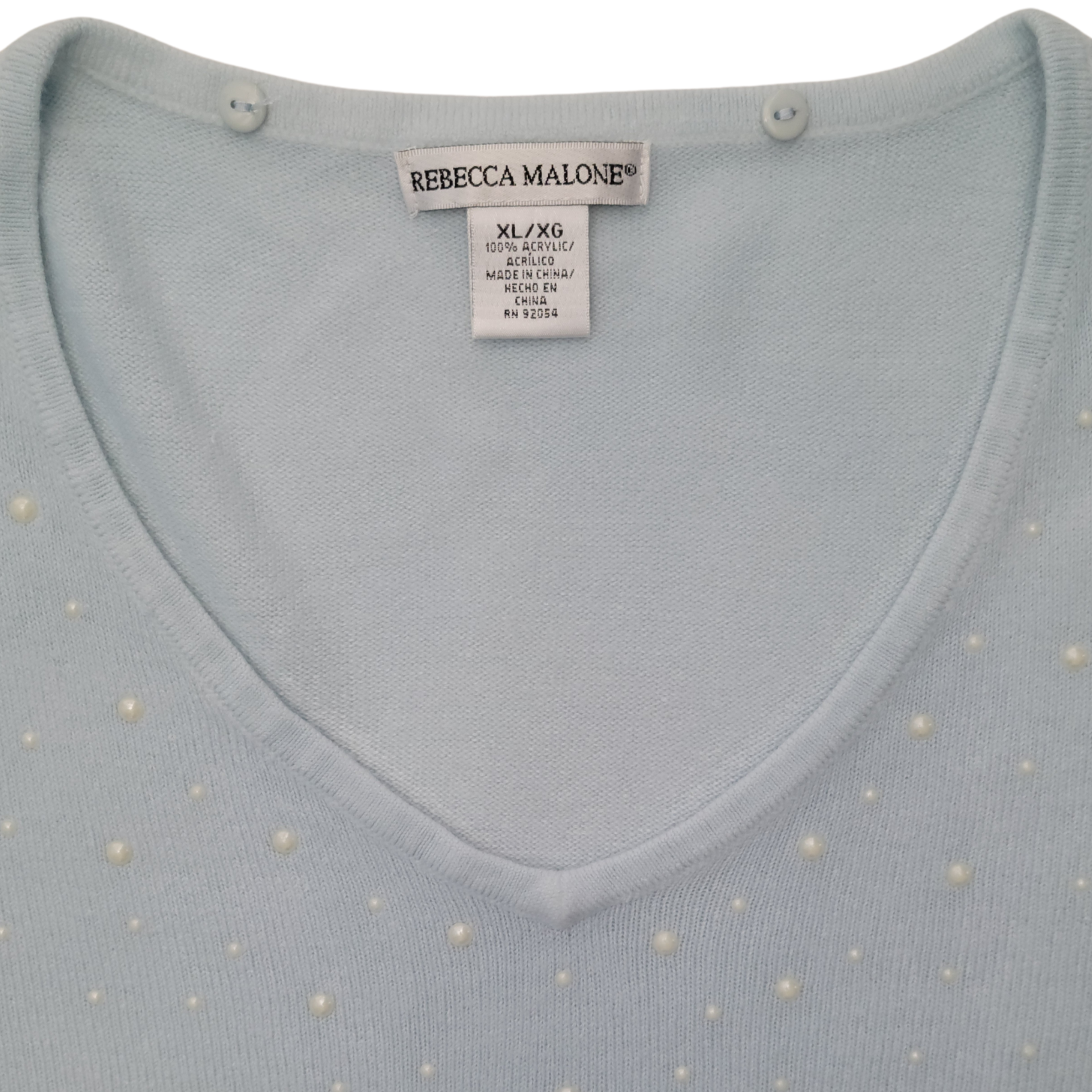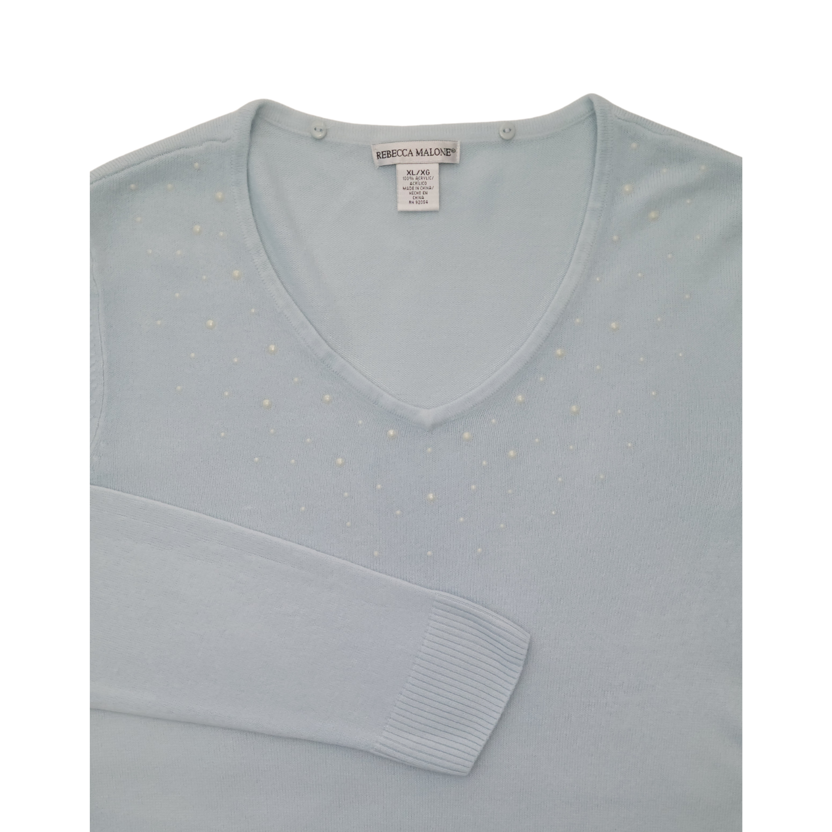 • V-neckline accented with pearl-like bead embellishments on the front