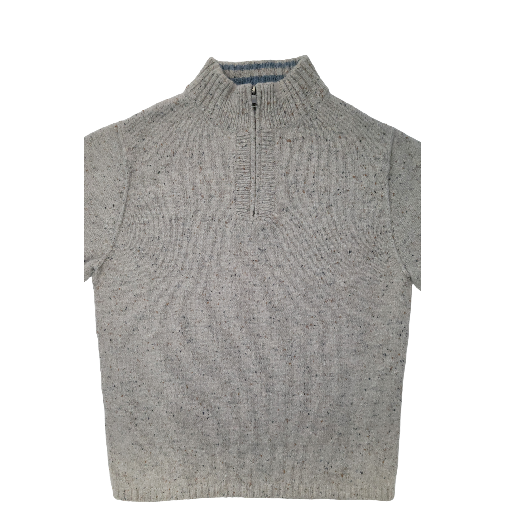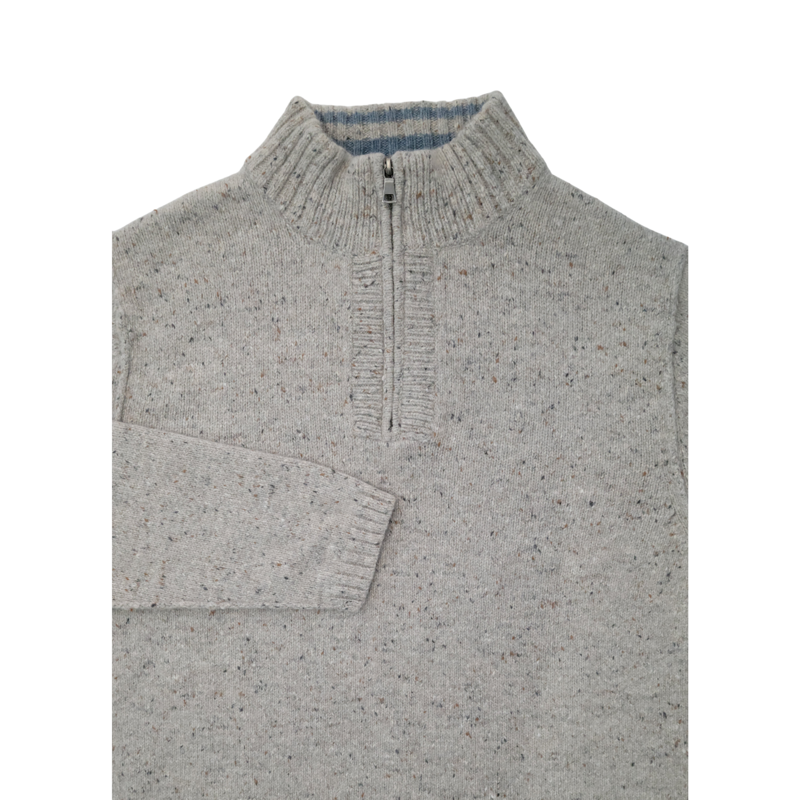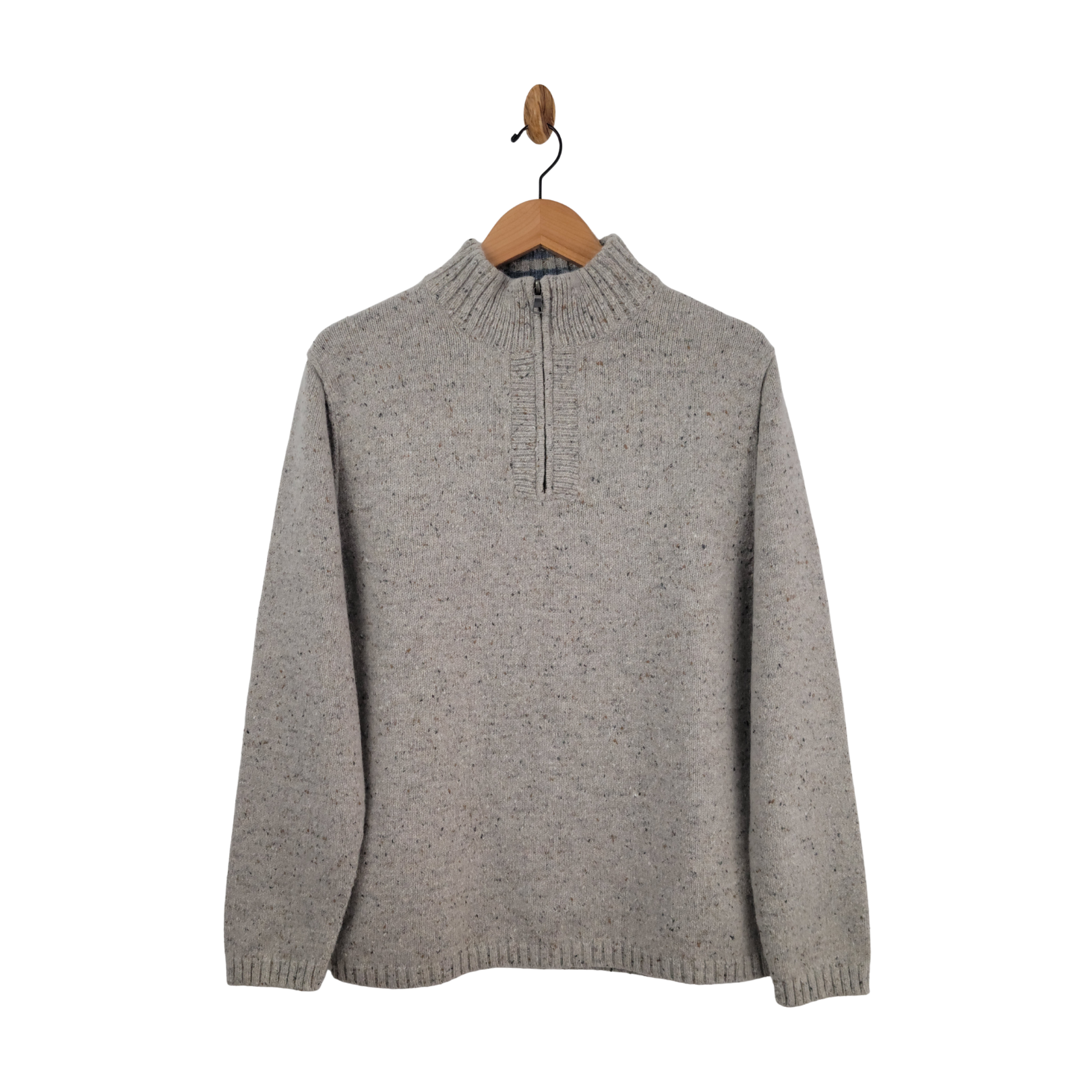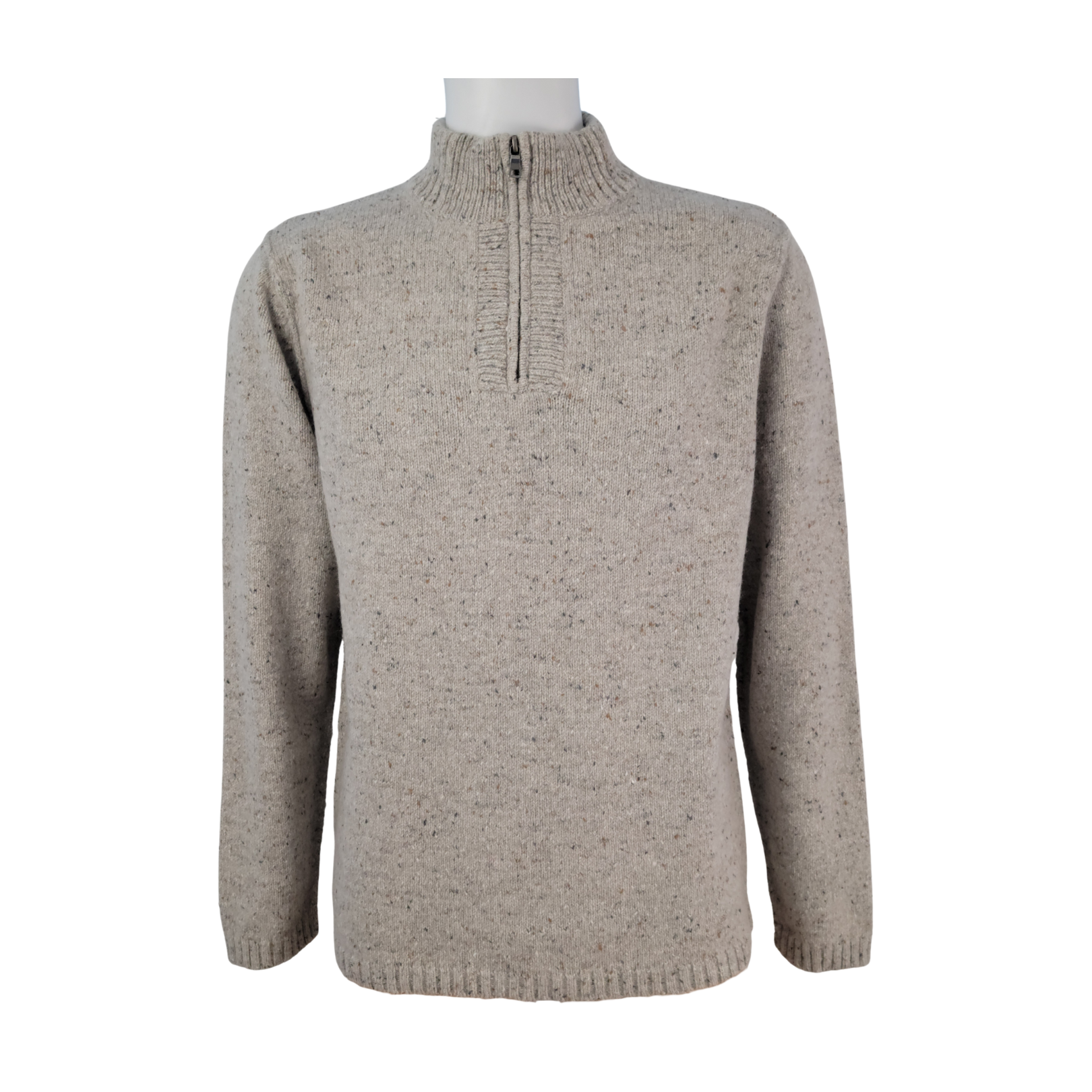 • Oatmeal/cream speckled knit with multicolor flecks (speckled/Donegal-style knit)