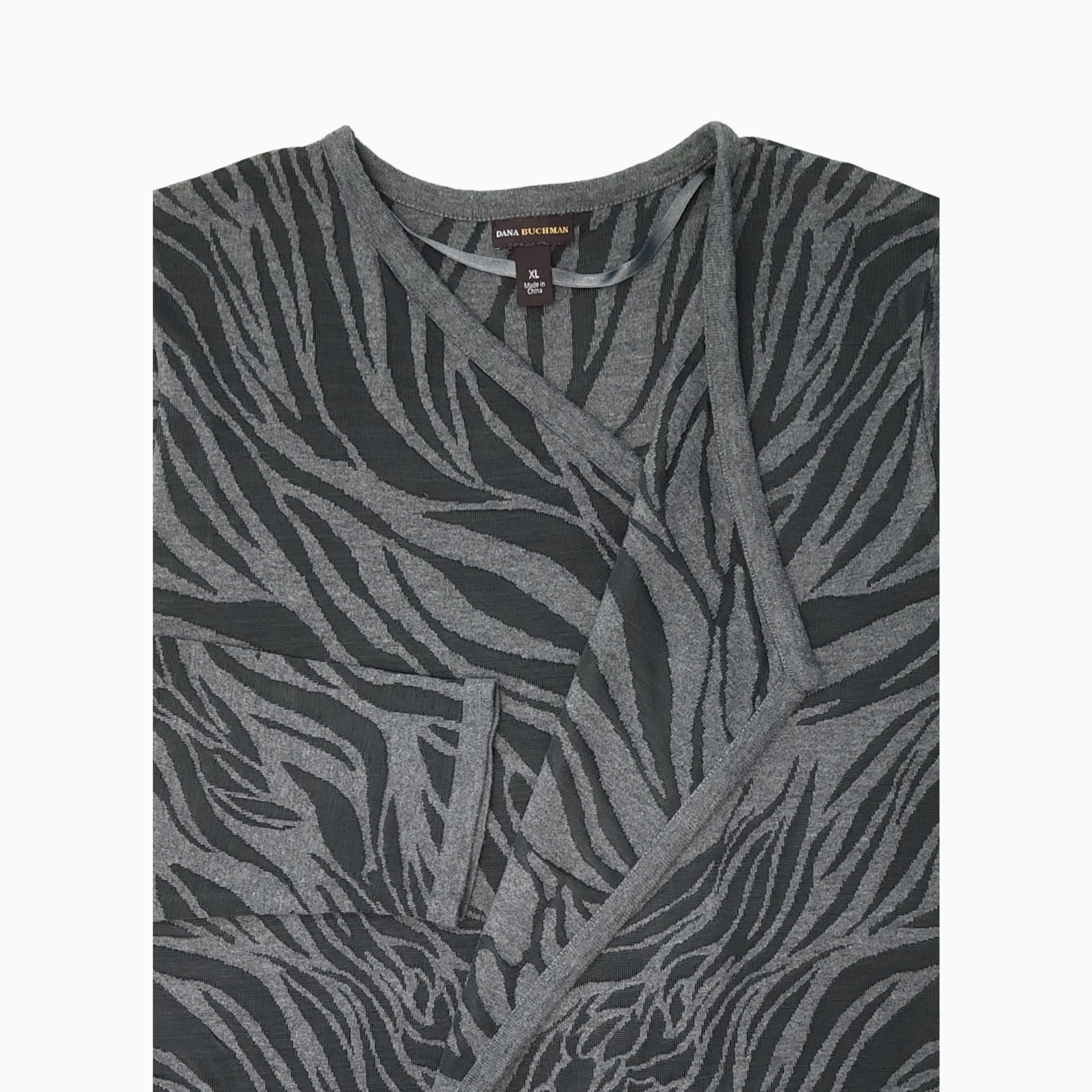 Dana Buchman Women's Zebra-Style Jacquard Open Front Cardigan - XL