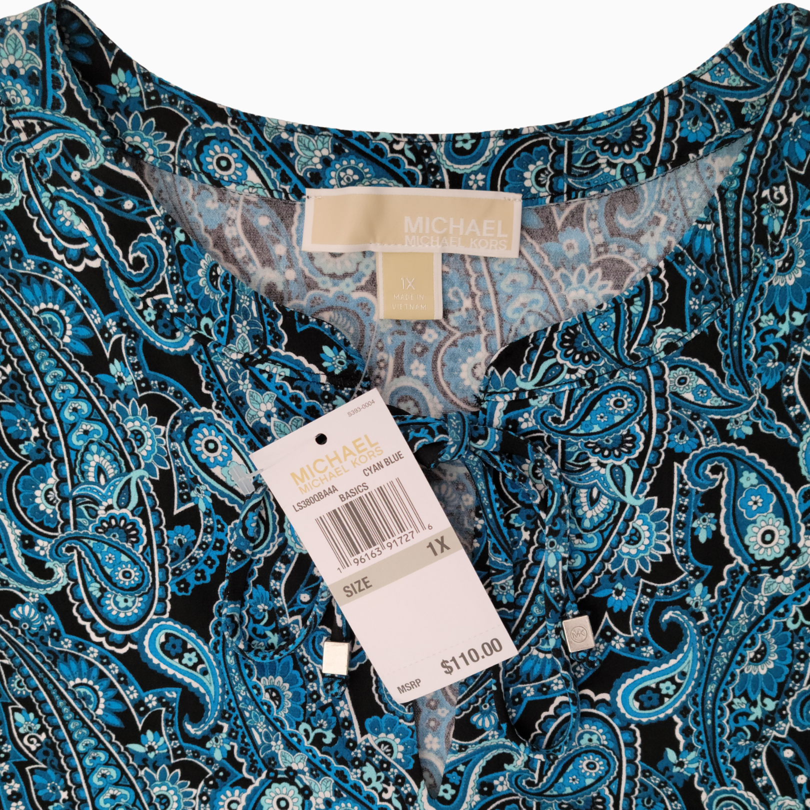 • Neckline is finished with a subtle keyhole and tie detail accented by signature MK silver-tone hardware