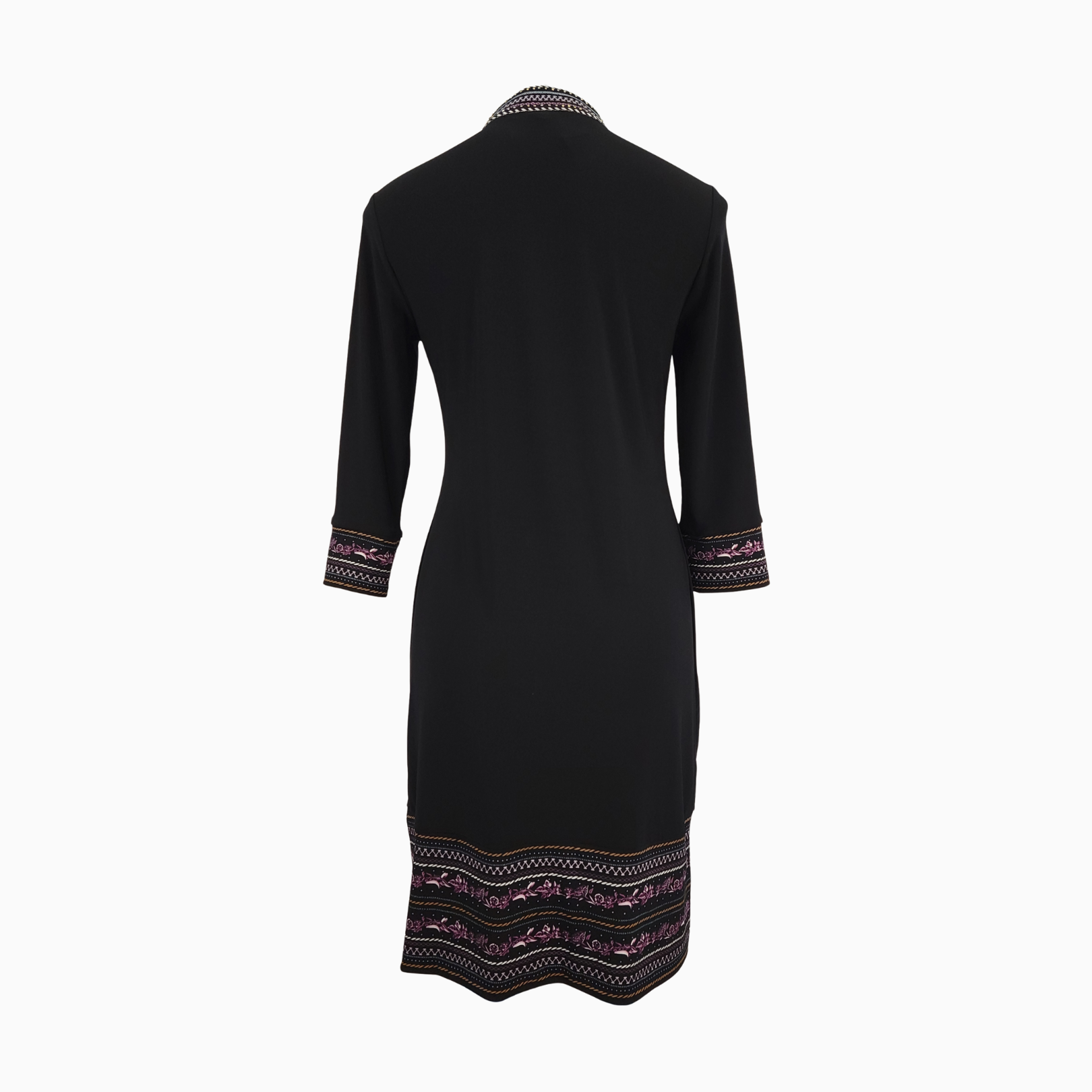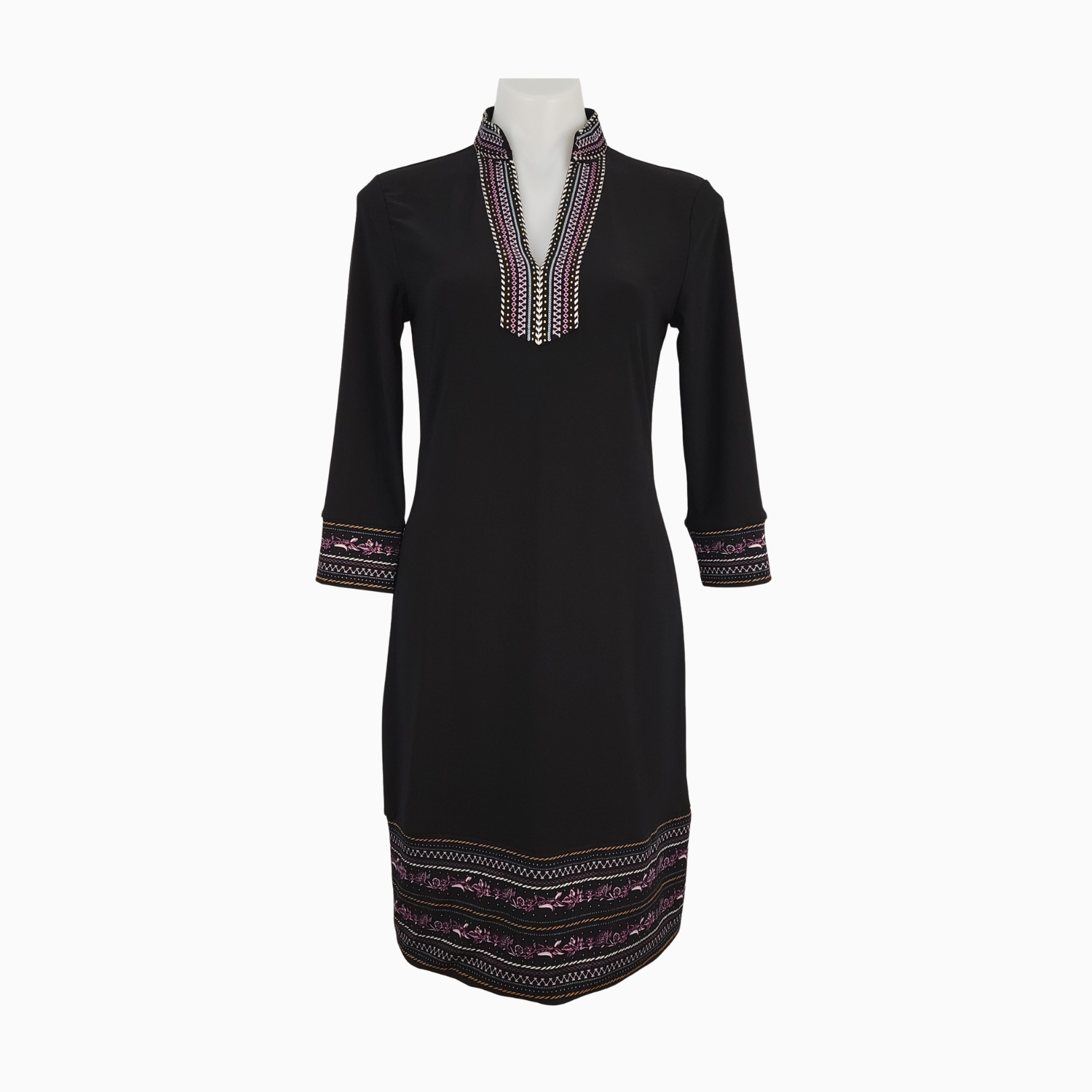 • Coordinating trim at the sleeve cuffs and hemline features a printed design (not embroidered) for a cohesive, balanced look