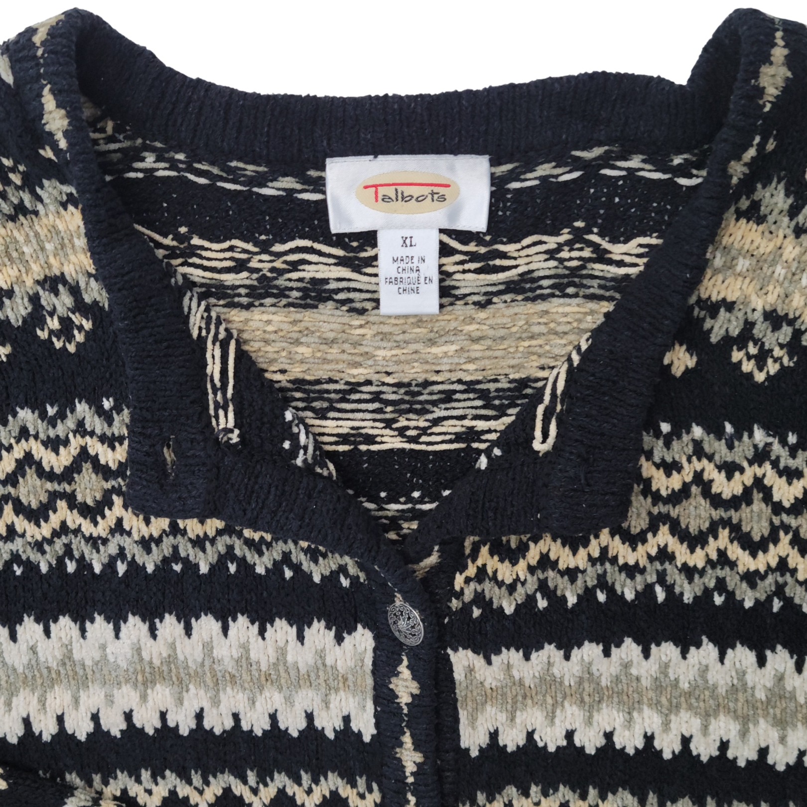 Talbots Women’s Fair Isle Pattern Silk Blend Cardigan Sweater Size XL
