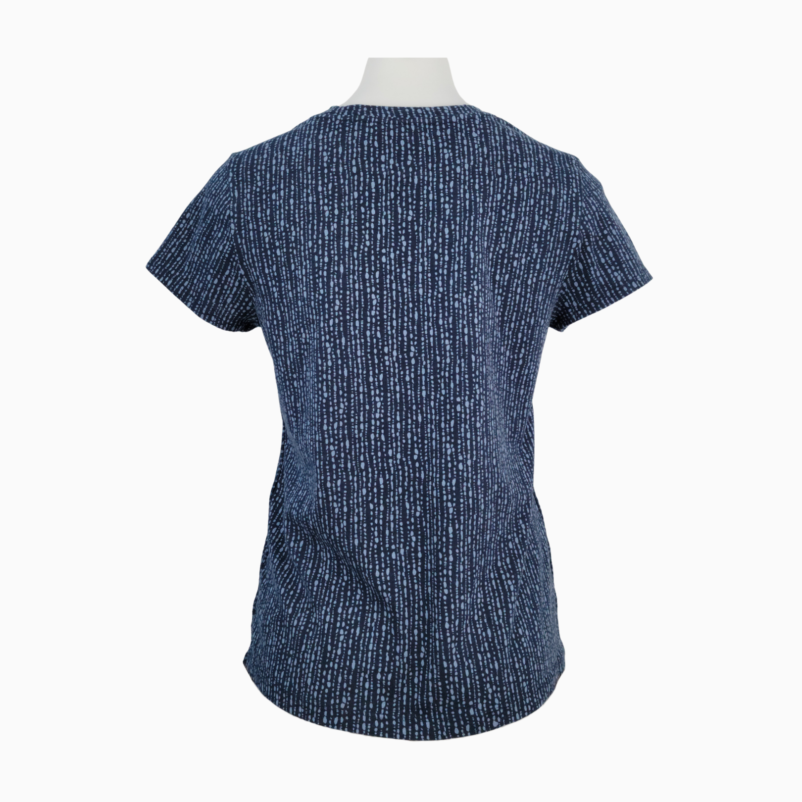 • Navy blue base with an allover vertical "rice pearl" print in  lighter blue
