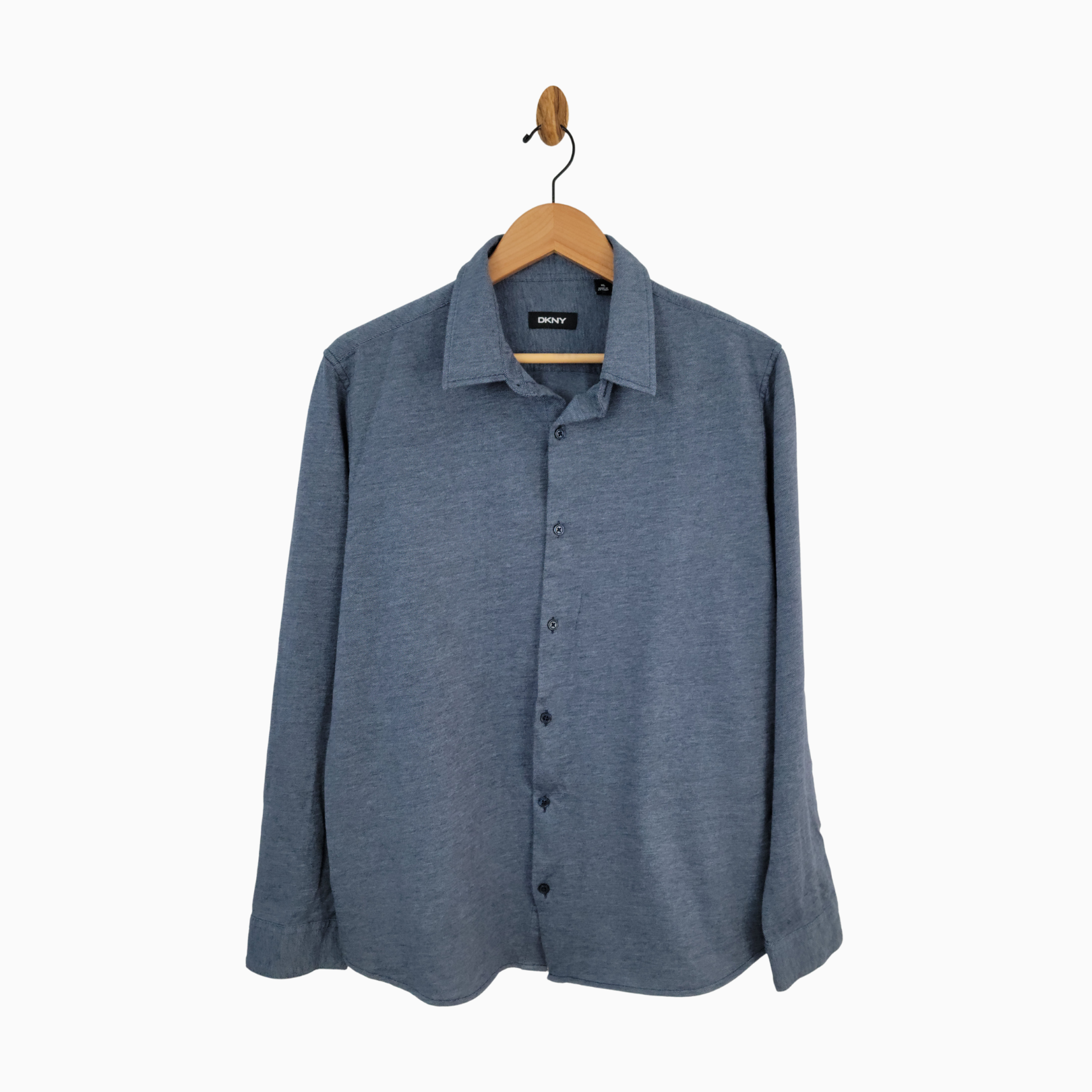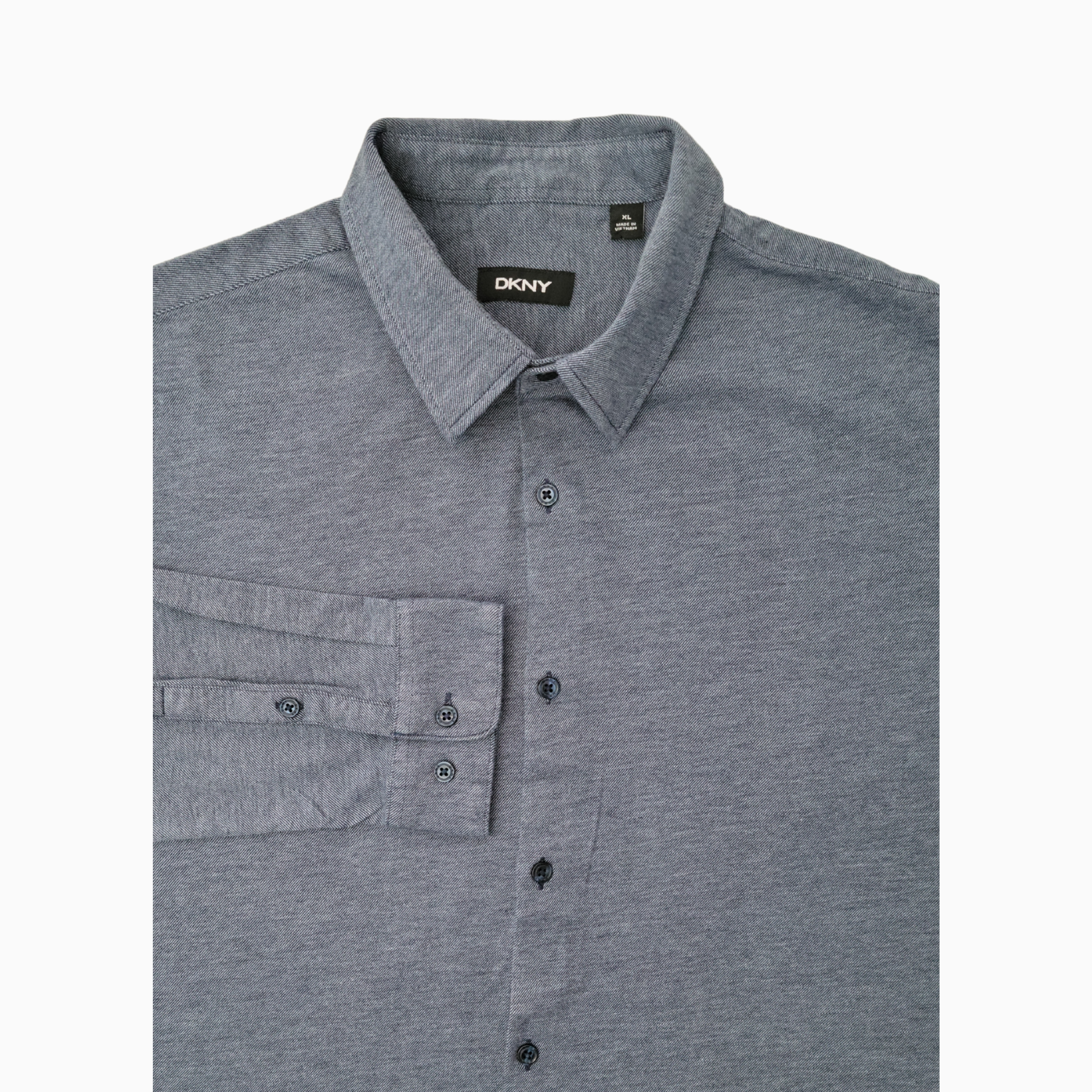 DKNY Men's Knit Cotton Long Sleeve Button-Front Shirt – Size XL