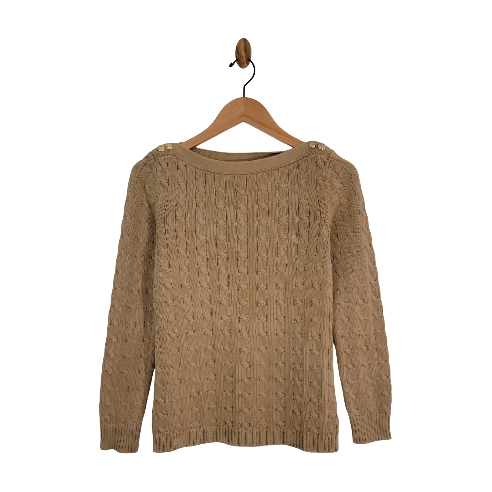 Lauren Ralph Lauren Women's Cable Knit Button Shoulder Sweater Size M